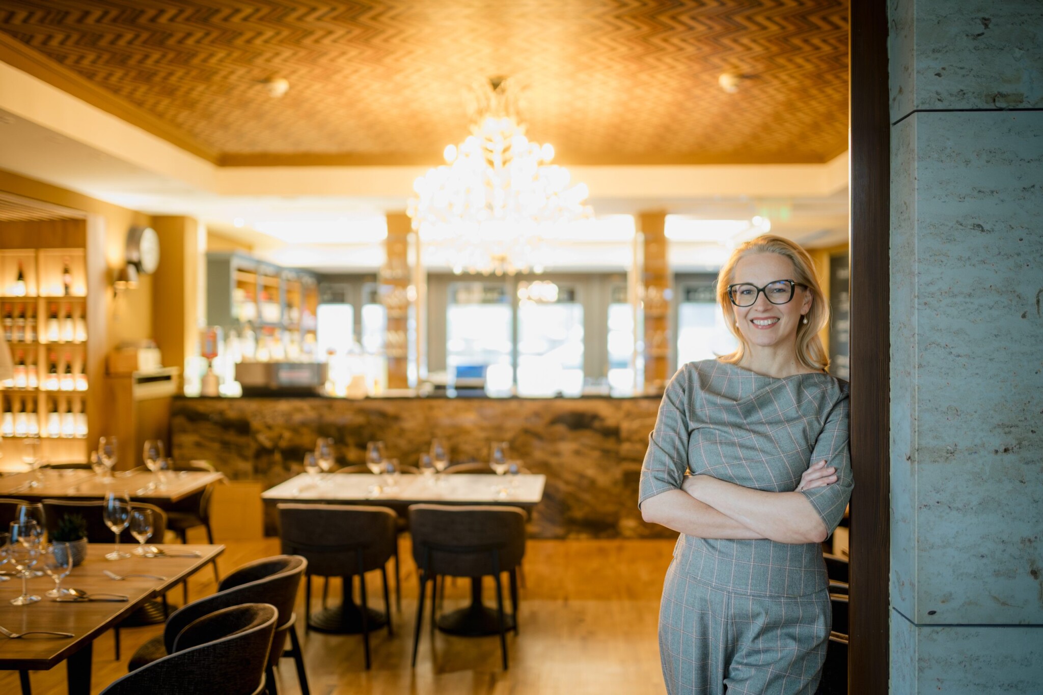 Andrea közvetlen vendéglátó és határozott főnök erős kézfogással, egyenes kommunikációval. Pár éve még azt írtuk, a család egy húszéves, organikus generációváltás utolsó momentumainál jár, mára ez vitathatatlanul lezárult. Gere Attila azóta hivatalosan visszavonult, ma Andrea és férje, a még erősebb kézfogású Csizmadia Kristóf a nemrégen holdingba átszervezett cégcsoport operatív irányítói. Ők vezényelték le a mostani beruházást, és legfőképp ők viszik a borászatot is, mert persze továbbra is az az első. Andreát idézve: