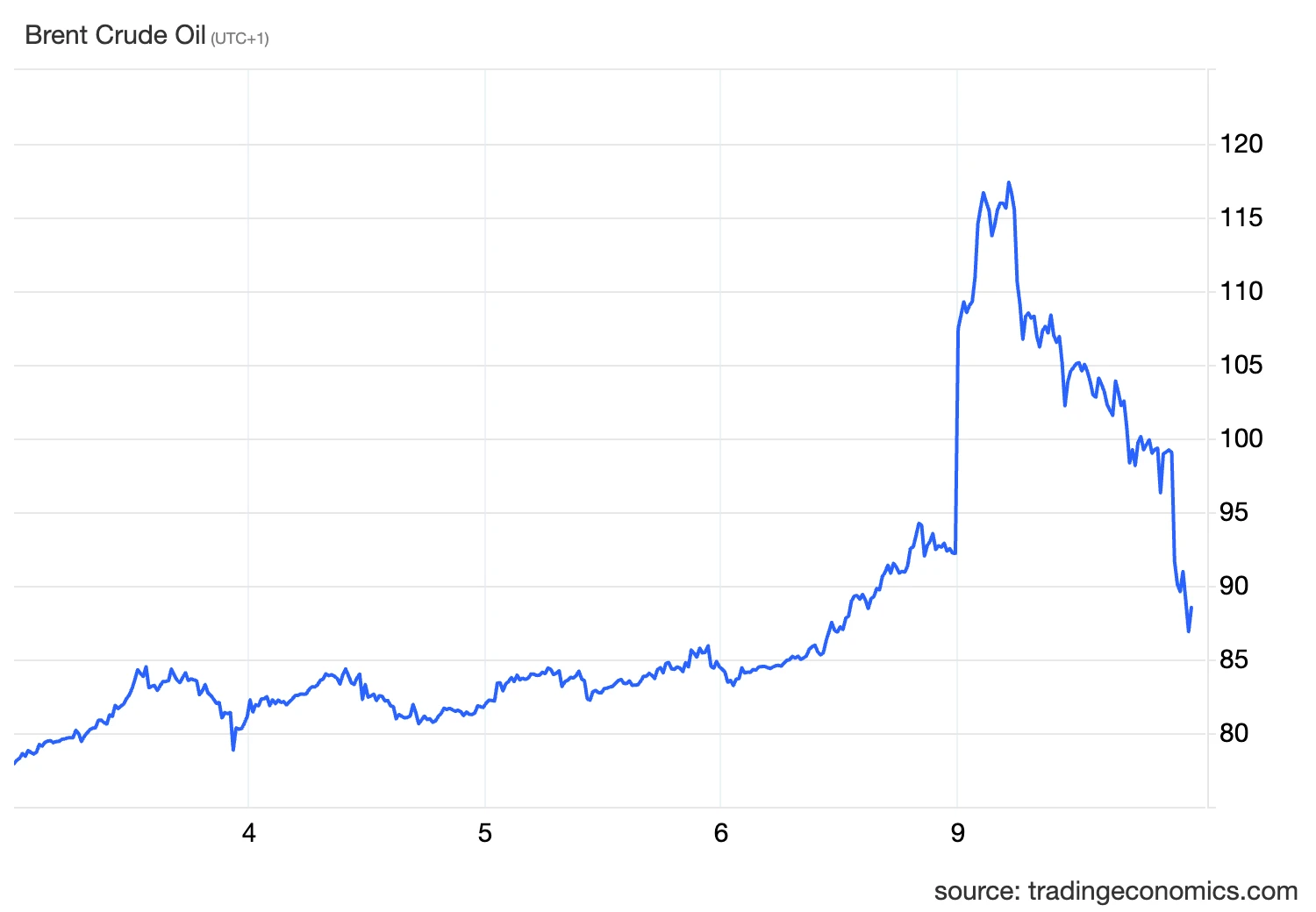 Az olajpiacon ezzel párhuzamosan drámai fordulat történt. A hétfőn délelőtt még hordónként 119 dollár fölé ugró árak délutánra már meredeken visszaestek. A Brent olaj a nap végére 90 dollár közelébe süllyedt, az amerikai WTI pedig 87 dollár körül zárt.