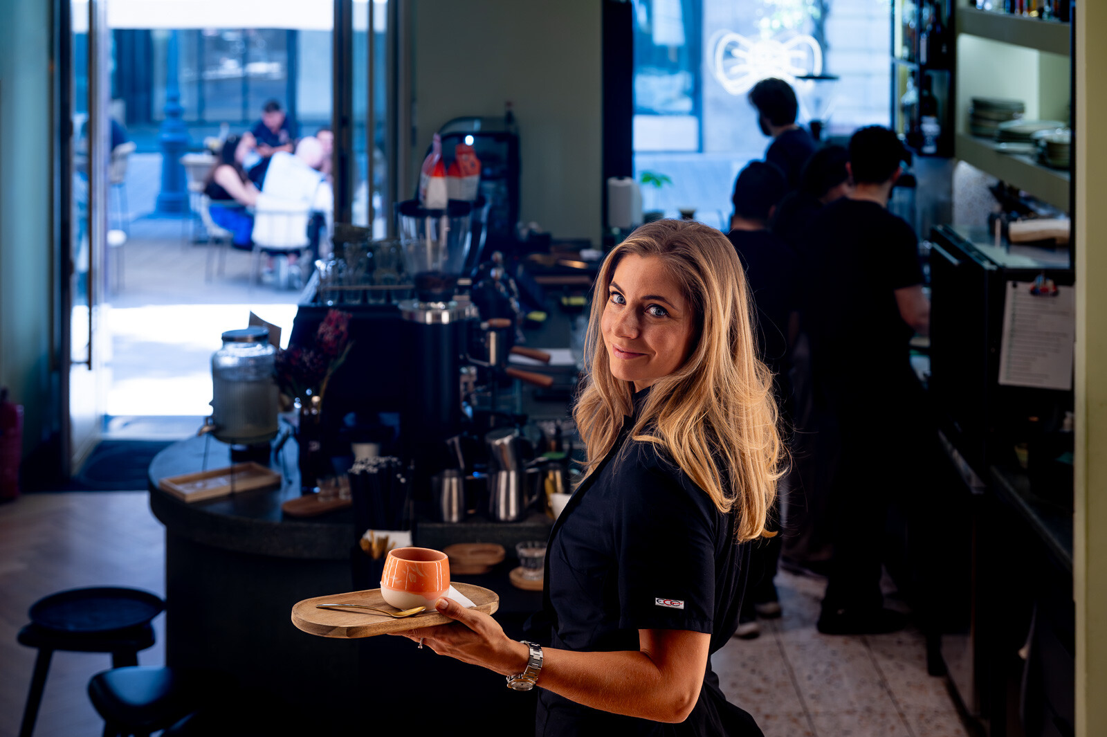 Nem az a vezető vagyok, aki laptoppal ül a sarokban vagy távolról irányít. Baristaként, a konyhán és a pályán is ott vagyok. Fontos volt, hogy akikkel dolgozom, motiváltak legyenek. Igazából úgy működünk, mint egy alkotói közösség. De például a HORECA vonalon is fontos a közösségépítés. A Hi New Beans! szemeskávé kereskedésünk egyik alapelve, hogy nem csak kávét adunk – tudást és közösséget teremtünk mellé. A szállodaiparban nagy a fluktuáció, ezért elengedhetetlen a folytonos képzés. Nem csak gombok nyomogatásáról szól, az elvet kell átadni, ehhez jelenlét kell. Személyesen képezzük őket.