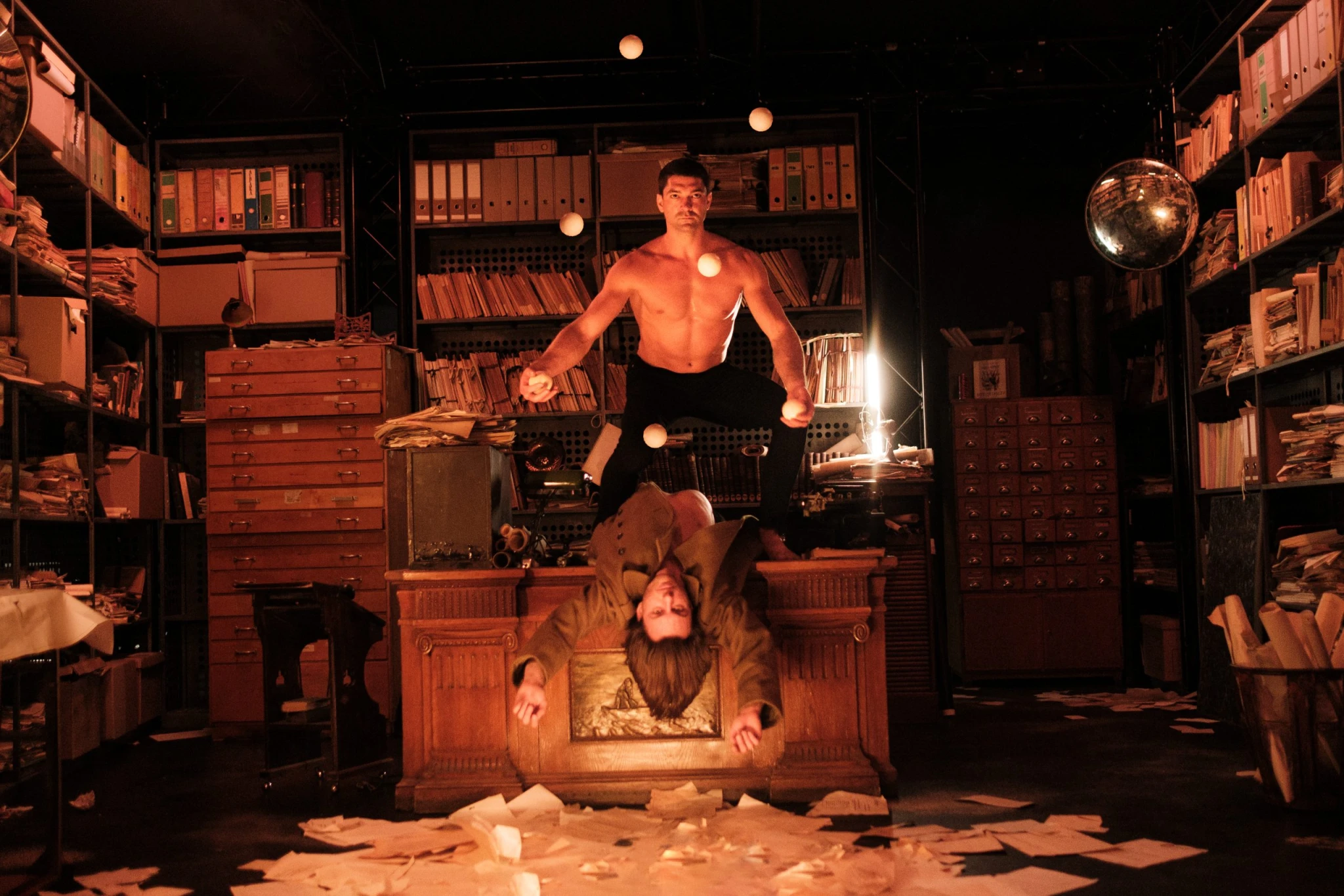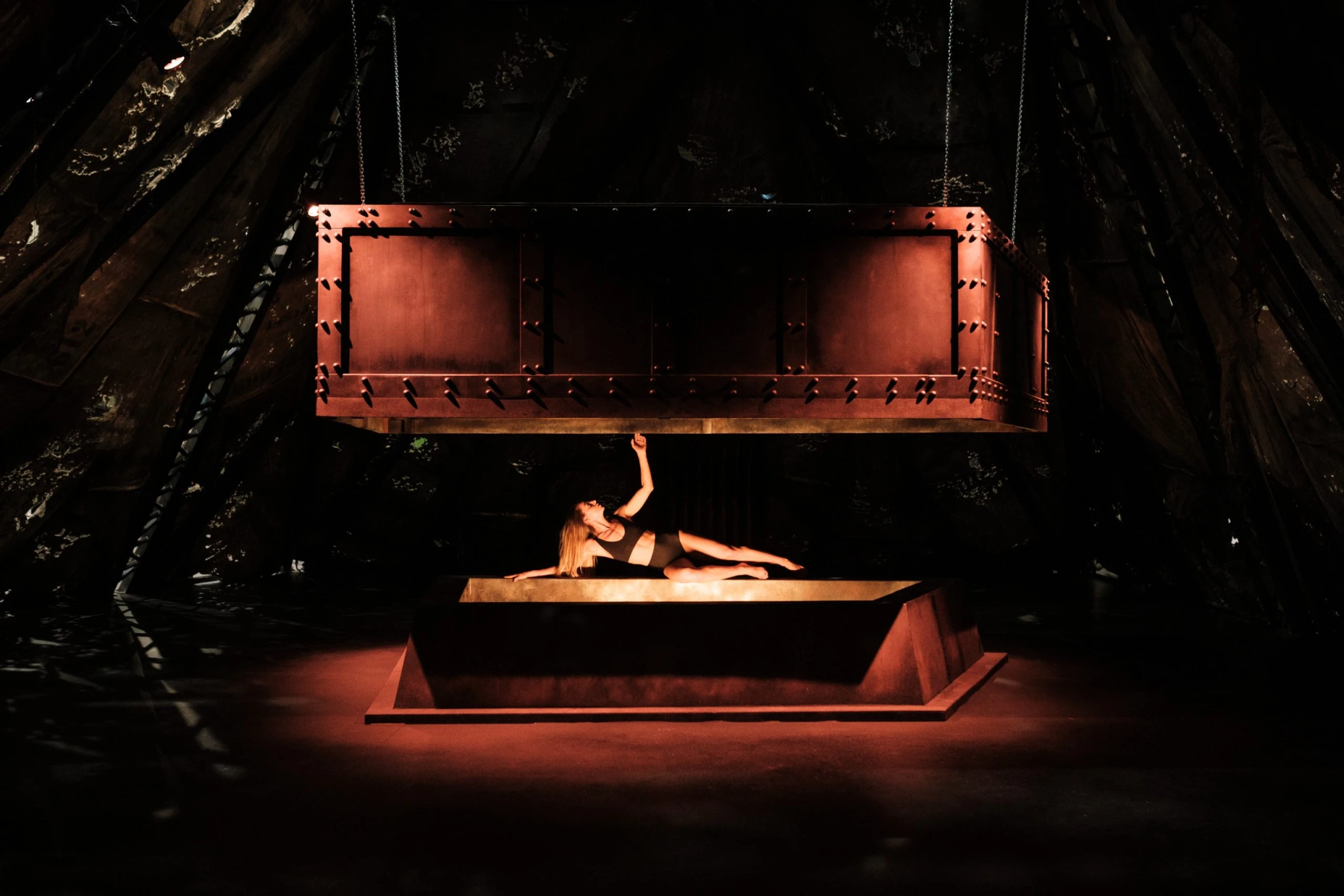 Hogy az előadás valóban magába szippantsa a nézőt, ahhoz kellett a látványon dolgozó csapat filmes tapasztalata, sőt, bizonyos értelemben az egész ország filmes tapasztalata. Az utóbbi években hazánkban forgatott külföldi filmek ugyanis nemcsak azokat az alvállalkozókat termelték ki, akiket specifikus gyártási igényekkel keresni lehet, de sok olyan díszletelem is van, amit korábban itt forgatott, nagy nevű produkcióból – többek között a Szárnyas fejvadász 2049-ből – hasznosítottak újra. Pető Beatrix is közel huszonöt éves filmgyártási múltra támaszkodott, amikor megkapta azt a feladatot, hogy Vági Bence elképzeléseit és az azokból Iványi Árpád által megrajzolt látványterveket lefordítsa a gyakorlat, a valódi világ nyelvére, hogy ne csak hangulatilag működő, de gyártható, cirkuszi számokra használható, biztonságos, tömegtartózkodásra alkalmas terek és díszletelemek készüljenek belőlük.