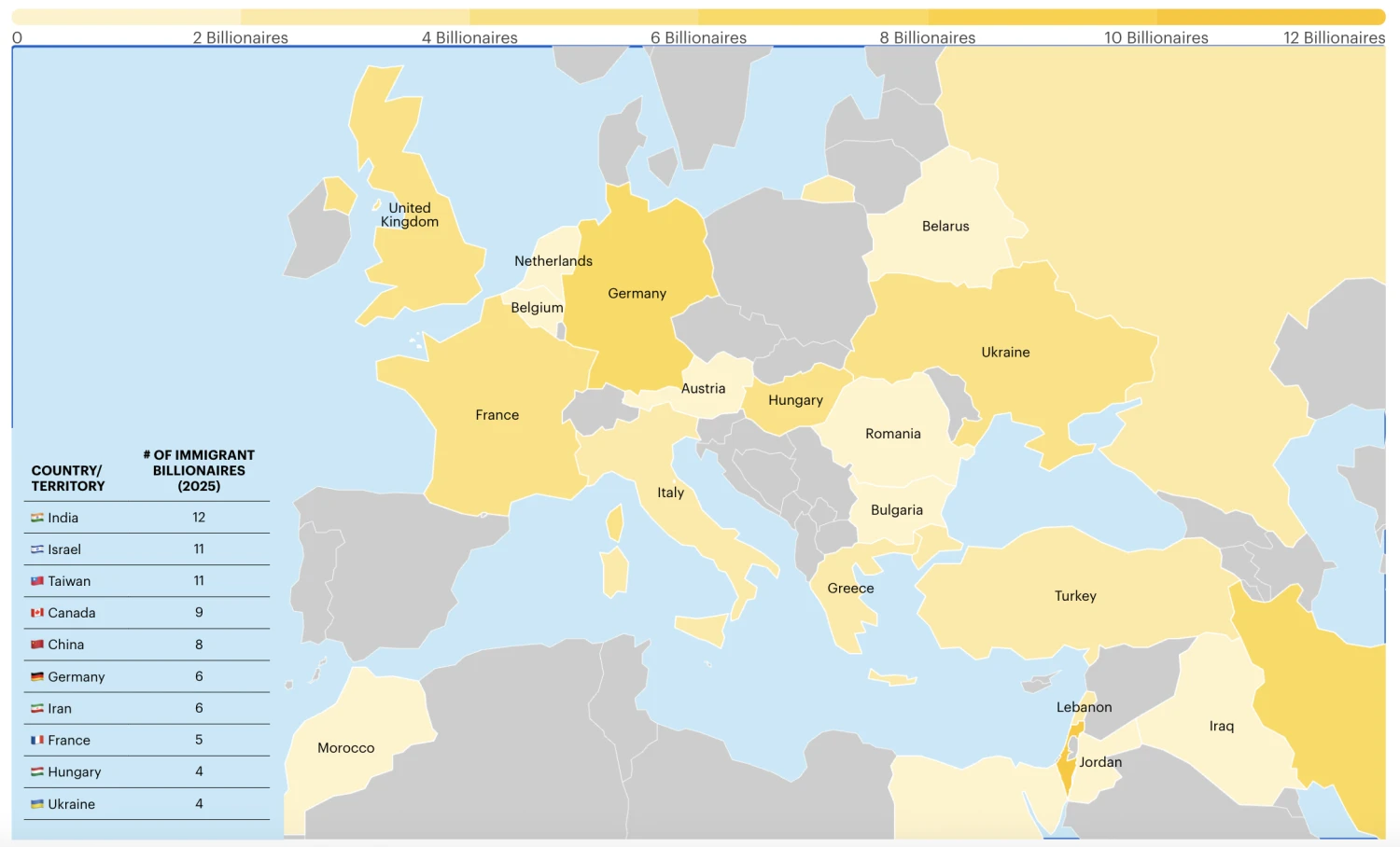 Míg az amerikai milliárdosok több mint egynegyede örökölte vagyonát, a bevándorló milliárdosok 93%-a self-made. Közel kétharmaduk a technológiai (53 fő) vagy a pénzügyi szektorban (28 fő) szerezte vagyonát.
