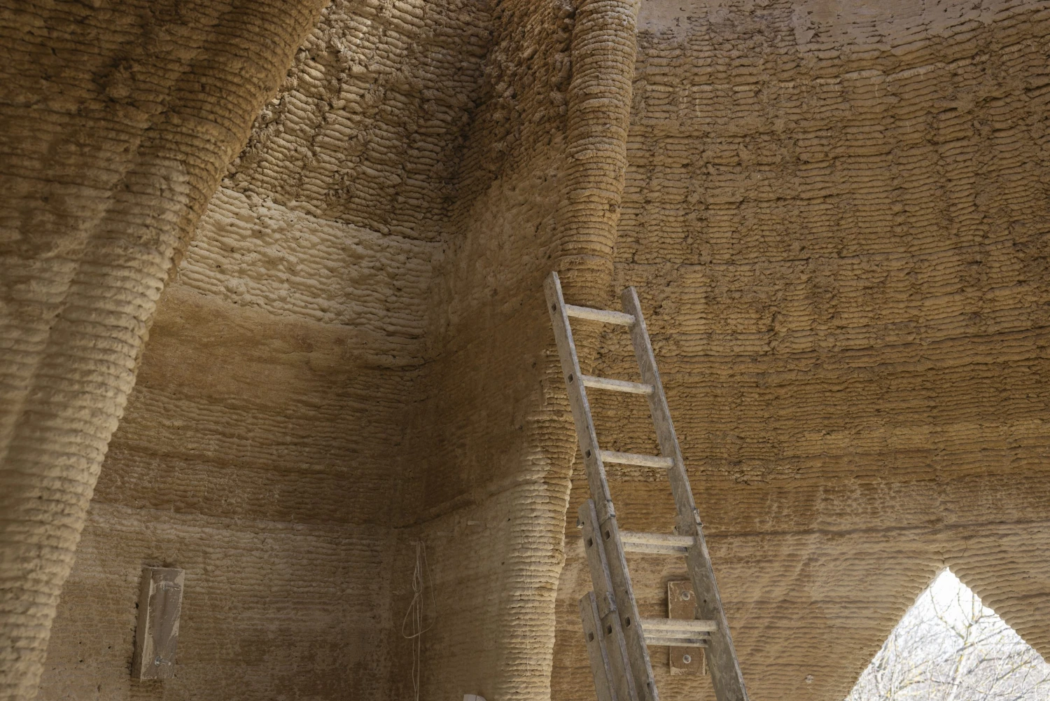 A vályog fő összetevője a termőréteg alatti talajrész, amit sárgaföldnek is hívnak, innen ered az ismert mondás is. Ehhez kevernek vizet és növényi rostokat, jellemzően ipari mellékterméket. Az Ökodome-nál ennél valamivel tovább mentek, és úgynevezett stabilizált vályogból dolgoznak, vagyis meszet kevernek még hozzá. Így nedvességállóbb és erősebb lesz, gyorsabban is szilárdul, ezáltal gyorsabban tudnak haladni, valamint dőlésszöggel rendelkező falakat is tudnak nyomtatni, vagyis boltívet és kupolaformát is.