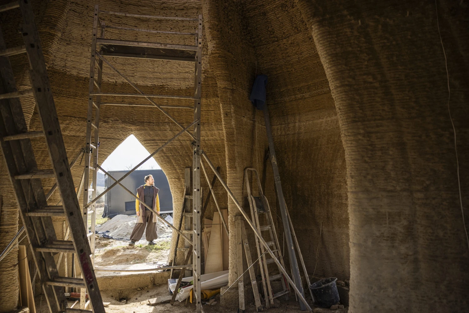 „A négyzetes alaprajz igazából csak az utóbbi pár száz évben terjedt el, elsősorban az olyan alapanyagok miatt, mint a tégla és a cserép. Ez a technológia viszont lehetőséget biztosít bármilyen forma megvalósítására, innentől nem jelent plusz energiát ezek megvalósítása. És mind statikailag, mind hőtechnikailag jobb értékeket lehet így elérni. Ha az ember ilyenben lakik, ráérez, hogy sokkal otthonosabb kör alakú, átölelő térben élni.”