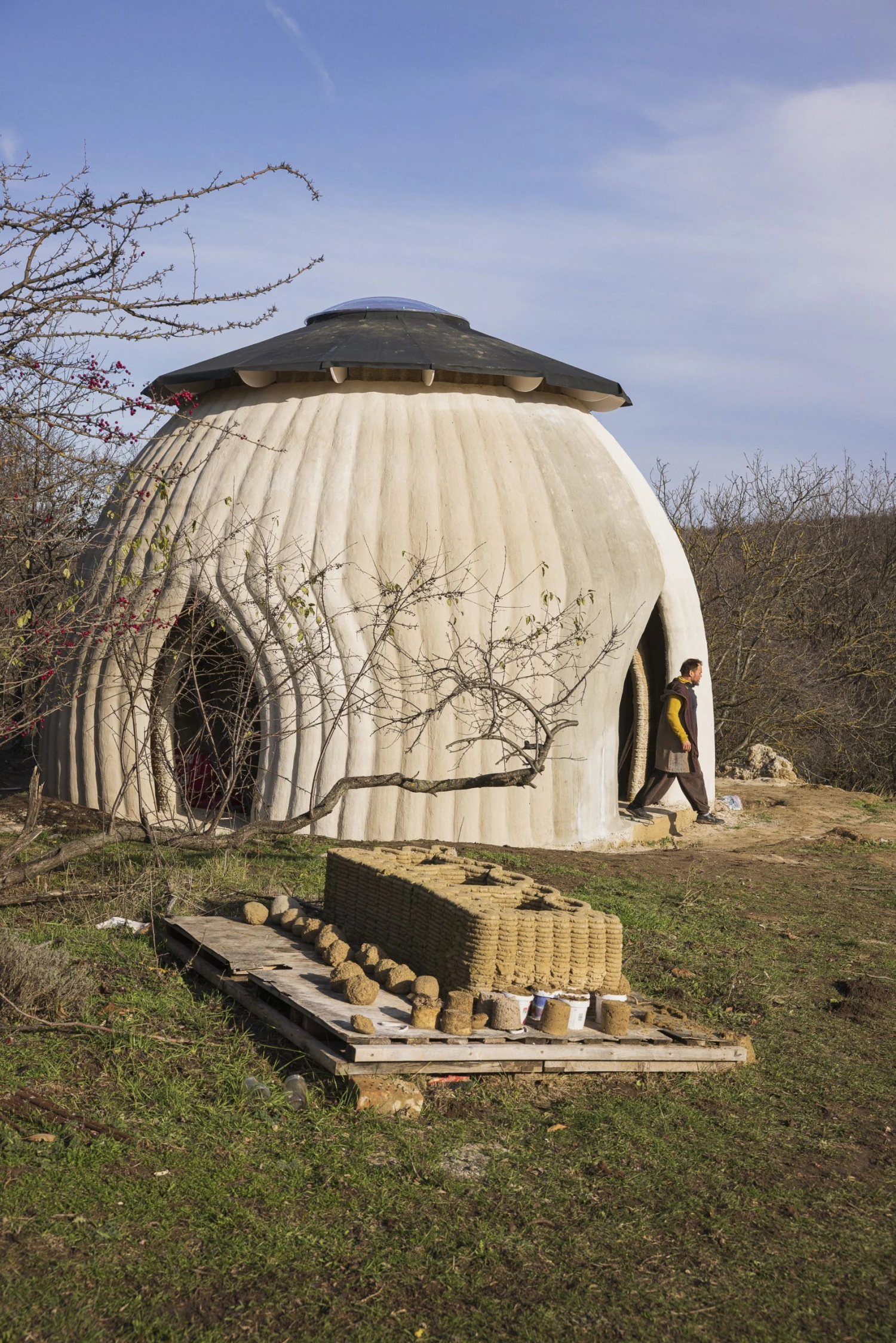 Krisztián ugyanis nem hagyományos formákban gondolkodik, jelenleg is kör alaprajzú házban él, és a tapasztalata szerint jobb egy ilyenben lakni. Sőt, rámutat, hogy az ősi kultúrákat megnézve mindenhol ilyeneket találunk, a jurtától az afrikai kunyhókig.